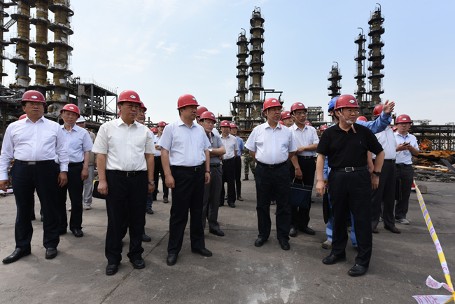 6月11日,國家安全監管總局在山東省臨沂市召開山東臨沂金譽石化有限公司“6.5”爆炸著火事故現場會。總局黨組副書記、副局長付建華,總局黨組成員、總工程師王浩水在山東省人民政府副省長孫立成陪同下查看了事故現場。