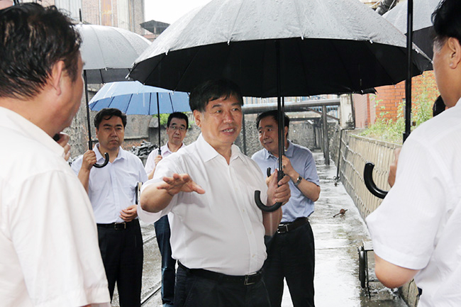 付建華一行冒雨來到大臺煤礦井口,實地查看防汛情況。