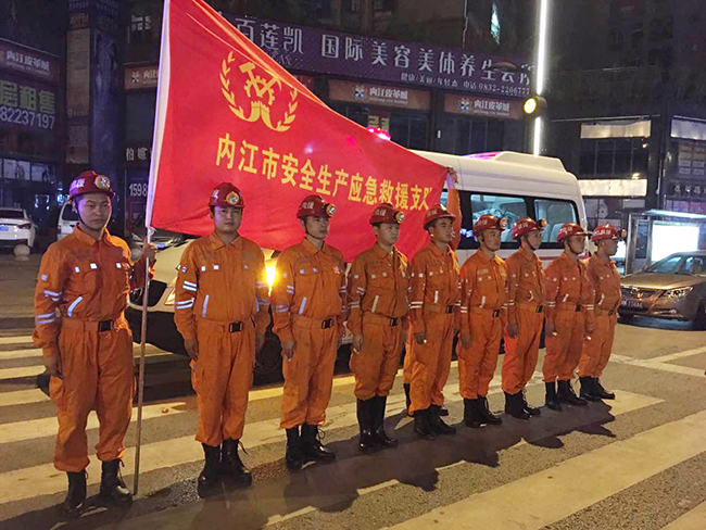 四川省內江市安全生產應急救援支隊緊急趕赴災區現場