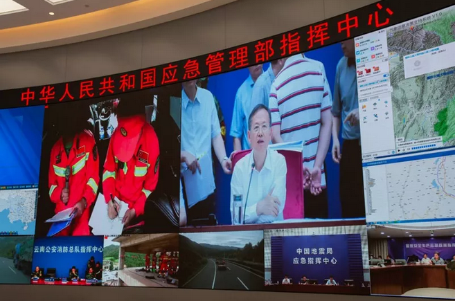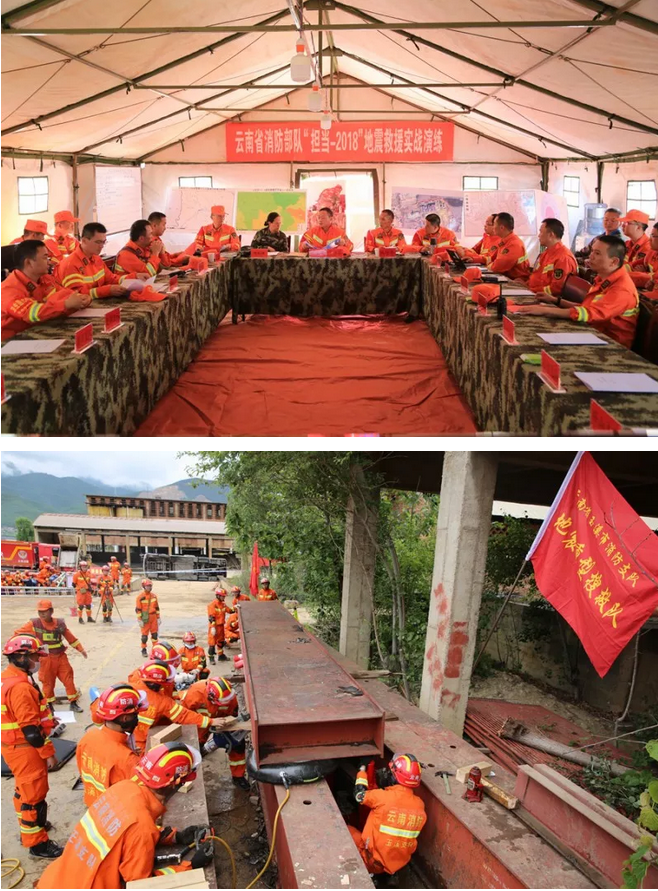 此次演練采取無腳本演練方式,模擬云南省某地發生里氏7.0級地震,造成建筑倒塌、大量人員被埋壓、道路交通阻斷、震區通信設備損壞、公網癱瘓等場景。接到信息報告后,應急管理部立即啟動應急響應,按照特別重大災害應急響應預案、工作手冊和保障機制要求,部領導和有關司局同志迅速到崗就位,根據職責分工模擬開展了震情災情調度、災損快速評估、救援力量調集、救災物資調配、通信交通保障、防范次生災害和信息發布等工作。云南省消防總隊調動滇西、滇東11個消防支隊近千名救援人員、56犬104車,協同省公安廳、財政廳、民政廳、地震局和通信管理局等單位,開展了生命跡象搜索、狹小空間救援、大面積坍塌構筑物破拆、平衡救援和高空救援、深井救援、危化品車輛事故救援等搶險救援工作。