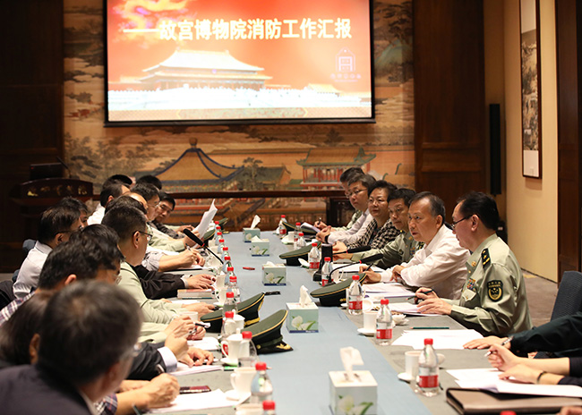 黃明表示,故宮博物院高度重視消防安全工作,認真履行主體責任,結合實施“平安故宮”工程,強化人防物防技防措施,多年來未發生火災,為全國文博單位樹立了典范。要全面總結故宮消防安全管理經驗做法,大力宣傳推廣,推動各地各有關單位做好文物消防安全管理工作。要對照國務院大督查和全國文博單位消防安全大檢查發現的故宮消防安全隱患,逐項落實整改措施,列出責任清單,細化階段任務,建立工作臺賬,一項一項落實到位;要樹立更高標準,進一步排查風險隱患,梳理細化防范措施,針對木結構古建筑群特點,強化用火用電管理,采用智能化手段加強監測;要提高設防等級,根據新形勢下故宮文物保護需要,組織專家制訂安全用電、防雷擊等方面的標準,從制度上解決問題;要針對具體建筑和具體文物,細化應急預案,開展常態化培訓演練,把責任和措施落實到值班值夜的具體人,提高精細化管理水平。消防部門要服務到位、保障有力,前置救援力量,一旦發生險情,做到快速響應、高效處置。