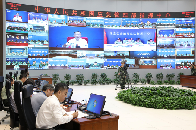 10月1日,應急管理部黨組書記黃明、副部長鄭國光在部應急指揮中心與北京、上海、廣東、江蘇、西藏等地一線執勤官兵視頻連線,慰問值班值守工作人員,并專題調度國慶長假期間各地應急值守及救援力量部署工作,要求高度重視節日安全,時刻做好突發事件應急準備,確保廣大人民群眾度過一個平安、歡樂、祥和的節日。