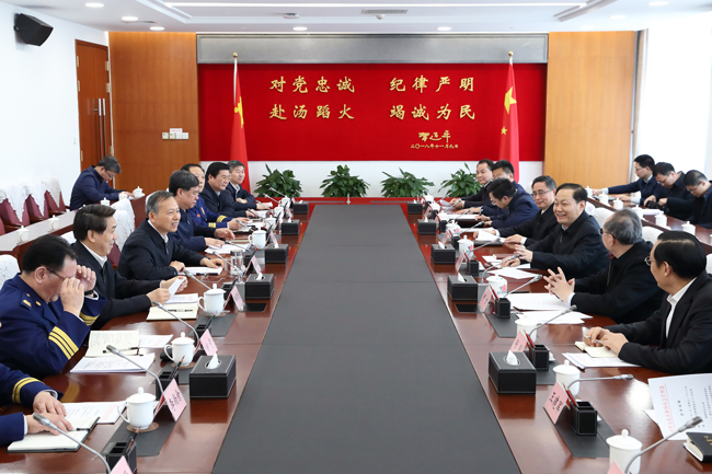 3月1日,應急管理部黨組書記黃明在京會見四川省委書記彭清華、省長尹力一行。雙方就深化省部合作、完善應急管理體制機制等進行了深入交流。
