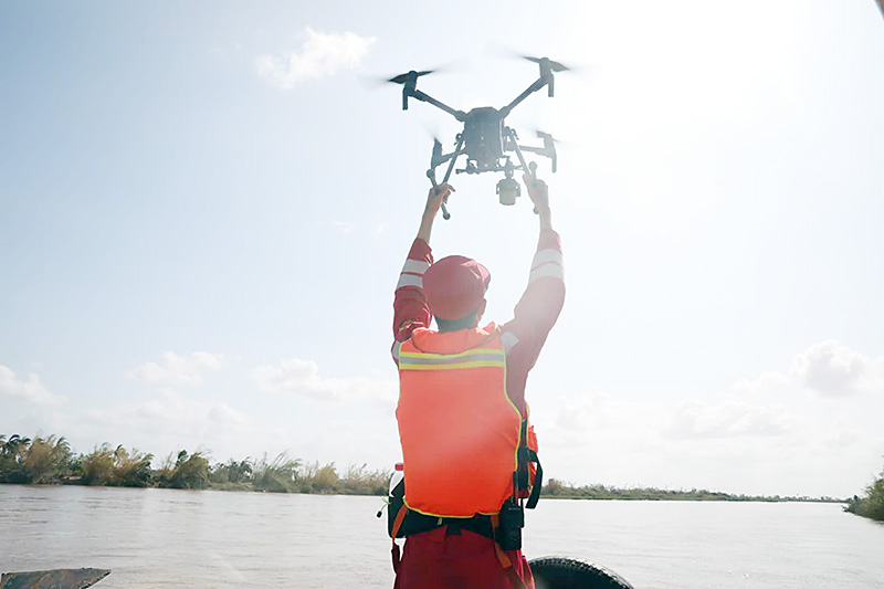中國救援隊利用無人機進行偵查。 圖片資料由中國救援隊提供