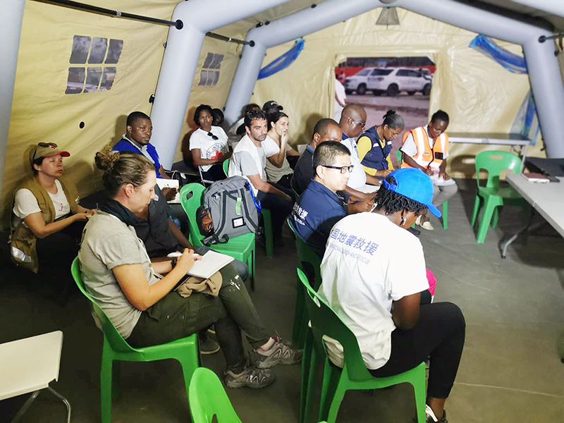 中國救援隊參加當地衛生部門召開的每日工作例會。 圖片資料由中國救援隊提供