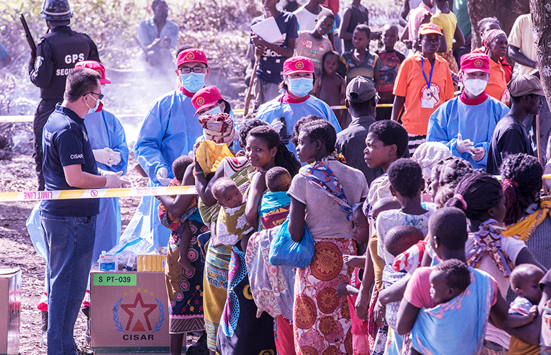 中國救援隊到貝拉市區災民安置點繼續開展救援行動。組織醫生、消防救援人員、當地志愿者組成的14人行動一隊,連續第三天來到學校安置點,開展醫療巡診等工作。期間,救援隊診治災民368人,發放300余份抗菌、止瀉等各類藥品,現場消殺廁所、垃圾堆等部位1.2萬平方米。