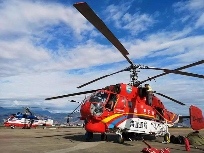 南航總站保山站K-32直升機準備從西昌青山機場調機歸建