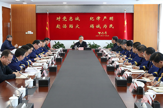 黃明強調,今年是新中國成立70周年,做好安全防范和應急救援工作責任重大。要認真貫徹落實習近平總書記關于防范化解重大安全風險重要指示精神,進一步強化風險意識,樹牢底線思維,緊緊圍繞建國70周年大慶、“一帶一路”高峰論壇等重大活動安保,科學統籌謀劃,切實把重大安全風險找出來、防控住,堅決遏制重特大災害事故。要堅持抓班子、帶隊伍,緊緊圍繞隊伍轉制后遇到的新情況新問題,加快推進制度建設,強化保障措施,提高隊伍凝聚力戰斗力。要突出問題導向,加強調查研究,緊緊圍繞改革迫切需要解決的問題、群眾反映突出的問題,拿出管用措施,來一場深刻的自我革命,以適應和趕上這個偉大的時代。