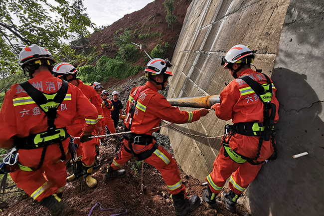 截至24日6時,貴州省消防救援總隊247名指戰員、9支礦山救護隊257人、貴陽隧道救援隊56人,攜帶搜救犬、生命探測儀已到達現場開展處置。救援隊伍到達現場后立即進行地毯式搜索定位,設立警戒區和安全哨,并將現場劃分為5個救援點,采取挖掘、破拆、撐頂等方式開展搶險救援。
