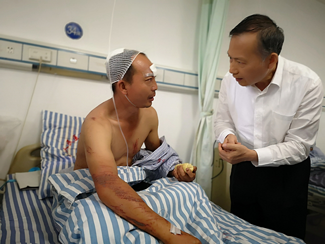 25日,黃明與聯合工作組繼續查看現場救援情況,指導搶險救援,并到六盤水市人民醫院看望受傷群眾。