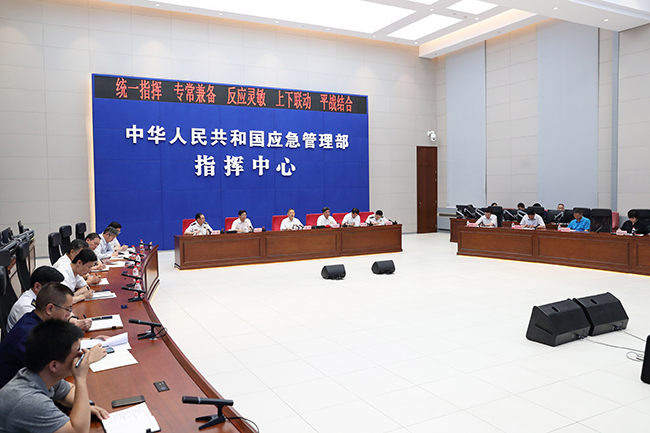 8月14日下午,國家防總副總指揮、應急管理部黨組書記黃明主持召開視頻調度會商會,對臺風“利奇馬”及其災害特點進行初步分析,指揮調度山東、遼寧、吉林、黑龍江搶險救災和強降雨防范應對,對后續防災減災救災工作作出部署。