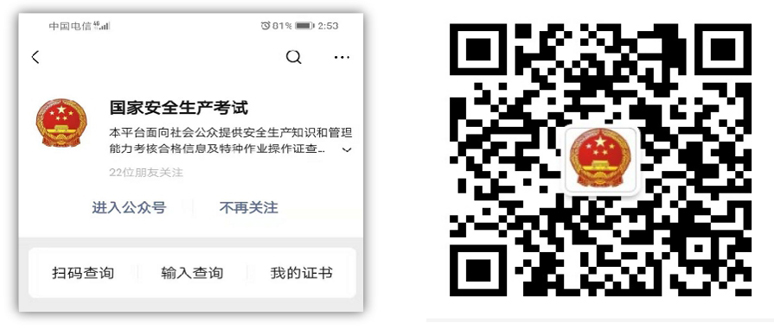 《通知》強調,所有證書只能通過應急管理部政府網站進入“特種作業操作證及安全生產知識和管理能力考核合格信息查詢”系統或登錄官方微信公眾號(國家安全生產考試,附后)查驗真偽。各地可鏈接查詢地址,禁止任何組織或個人自建證書查詢平臺或系統。