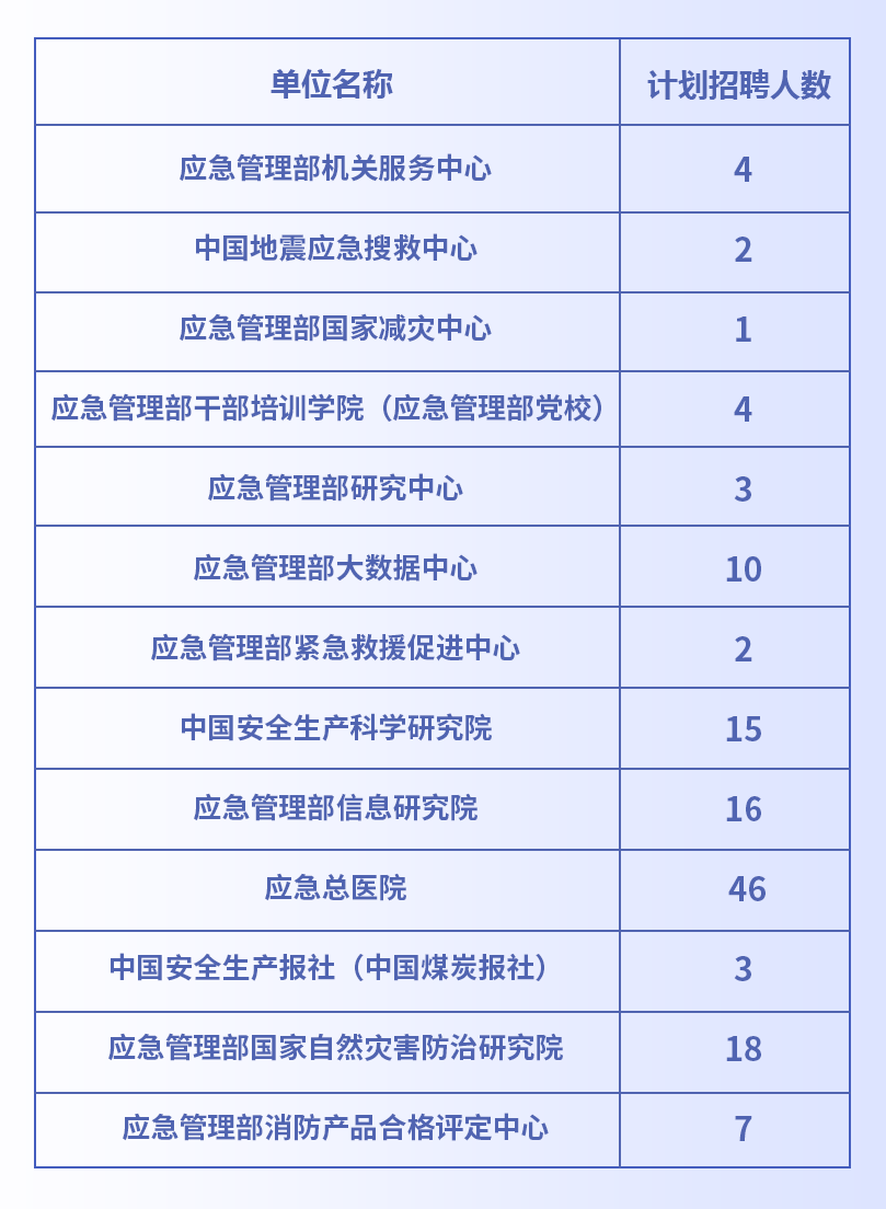 根據工作需要,應急管理部所屬單位計劃面向應屆畢業生和社會在職人員公開招聘工作人員。